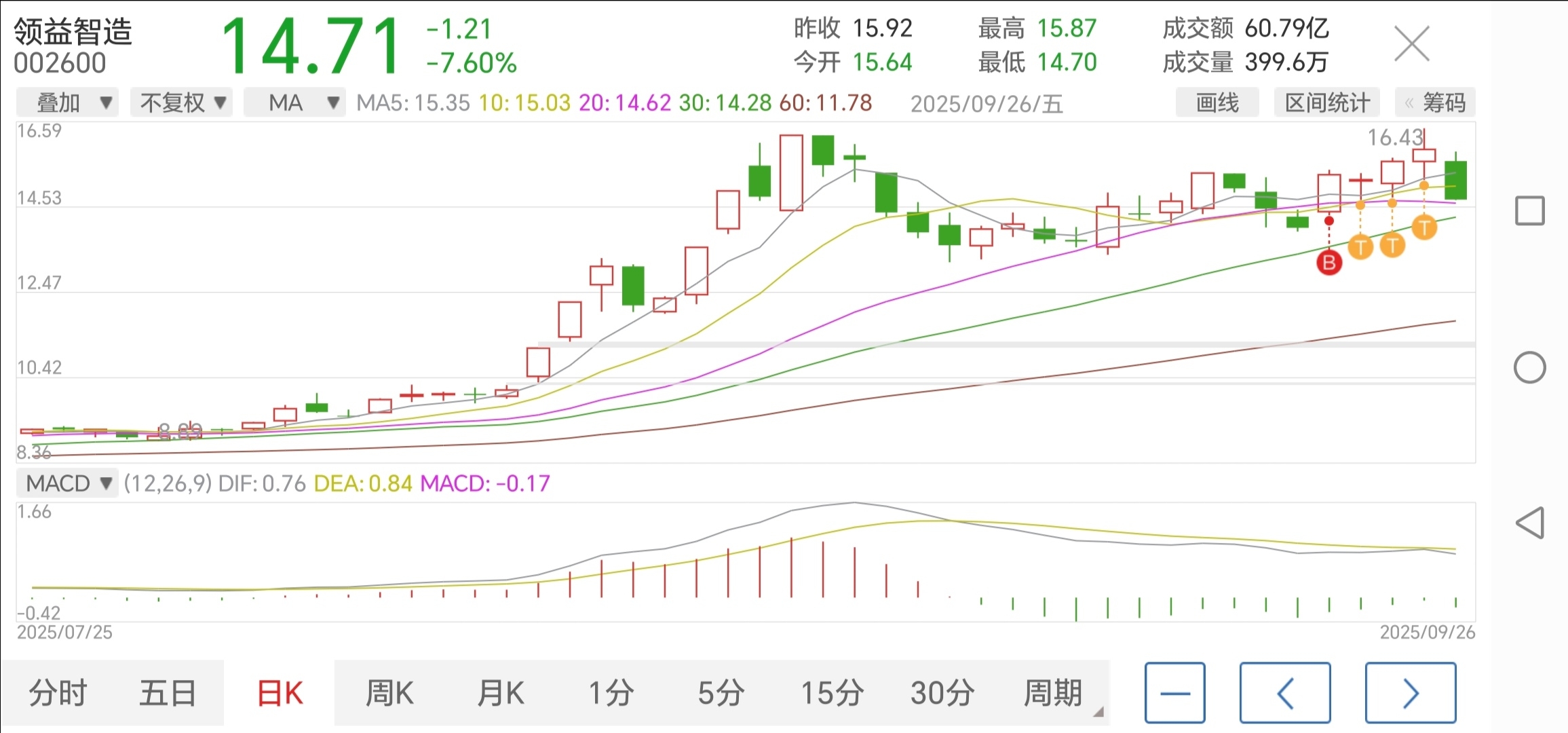 $领益智造(SZ002600)$ 做T三天的利润,周五直接蒸发。没有利润垫底,又要重新开始。明天又是迎接大风大浪的一天,好运!