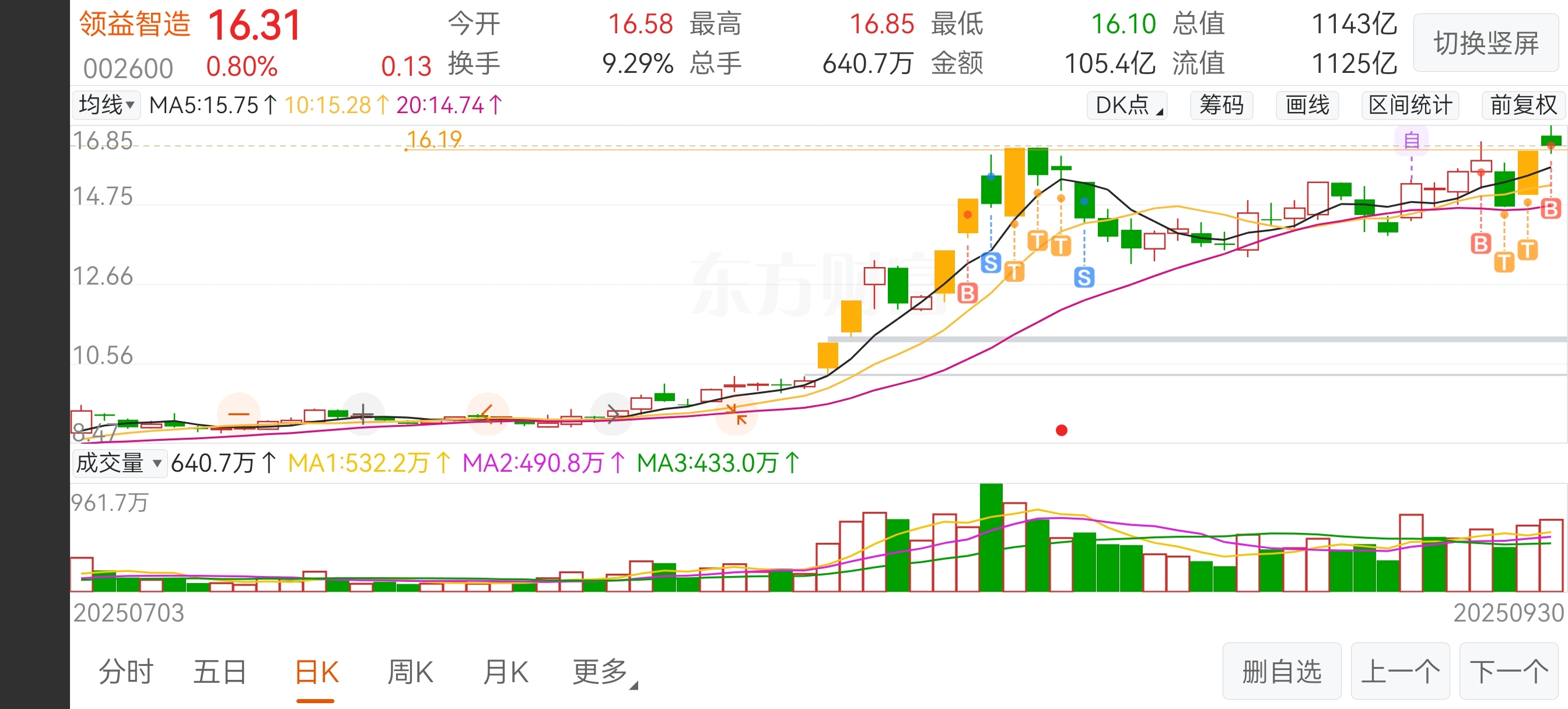 $领益智造(SZ002600)$ 后天开盘,热度不减,高位上升,这支票为什么我总是感觉是大牛了,不想持有它,又怕它后面不给我机会那种