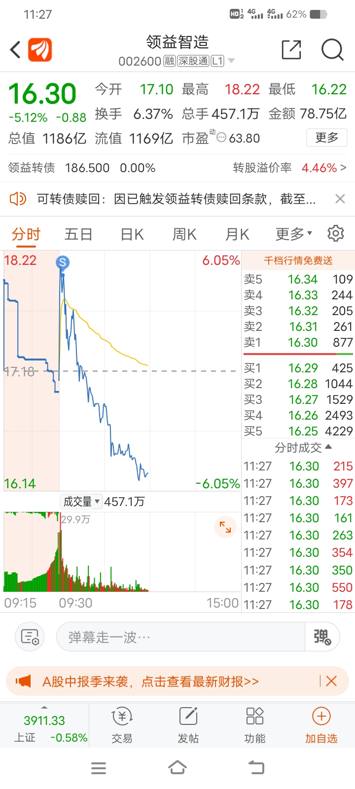 $领益智造(SZ002600)$ 还好早上卖了。要不然会吐血