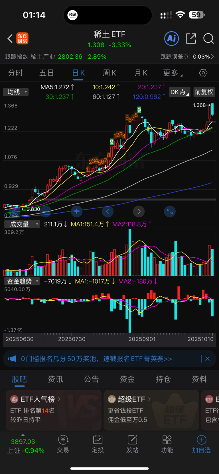 稀土etf排名14,明天买北方的多,这个etf就能红!这个etf红就会有人买入!