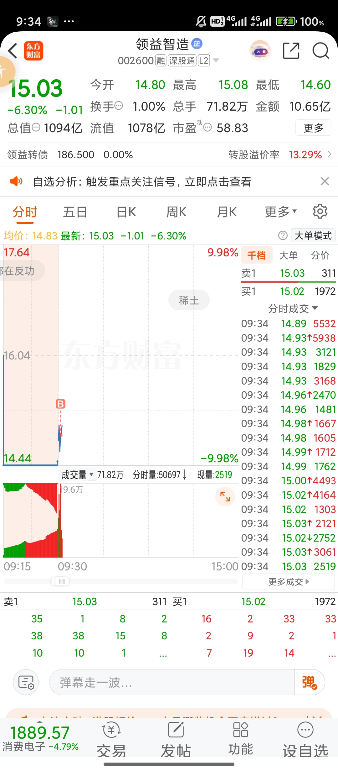 $领益智造(SZ002600)$ 跌停也好,不跌停也罢,反正无所畏惧