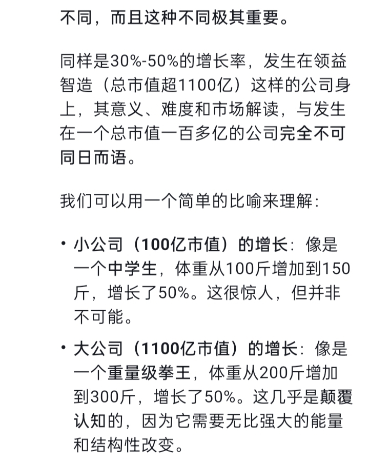 千亿公司的50%的增长率和百亿公司50%的增长率不是一个概念,一家拥有千亿市值护