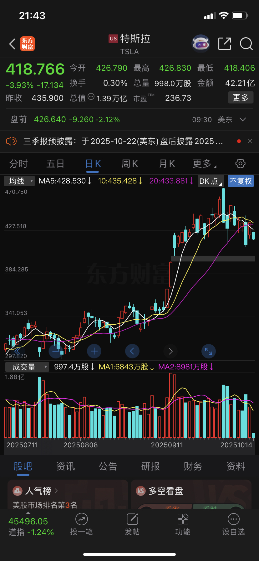 $领益智造(SZ002600)$ 今天的领益是特别难看的诱多行情走势,昨晚发三季报业绩利好预告早盘高开高走最高股价到16.07元,早盘15.8元以上进了很多散户。今晚美股开盘大跌特斯拉、英伟达等科技巨头暴跌,关税战会愈演愈烈的。我们的大盘暴跌也是最近几天而已。要敬畏市场。