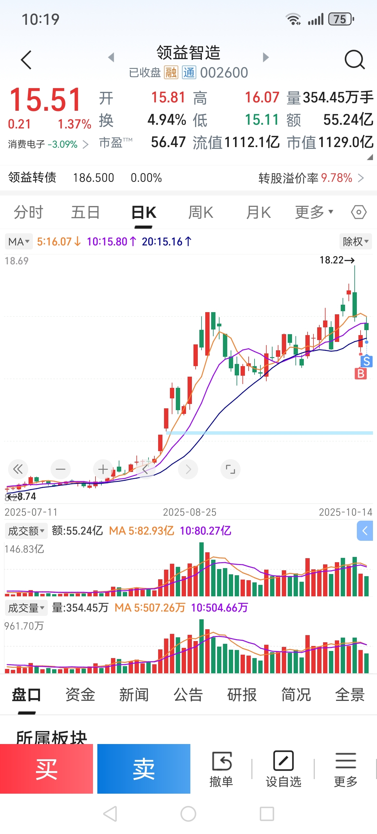 $领益智造(SZ002600)$ 第一次来挺成功的7个点有机会还回来