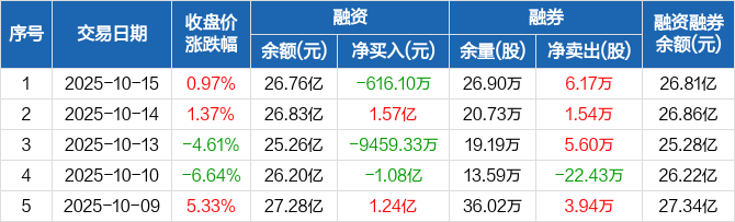 领益智造:融资净偿还616.1万元,融资余额26.76亿元(10-15)