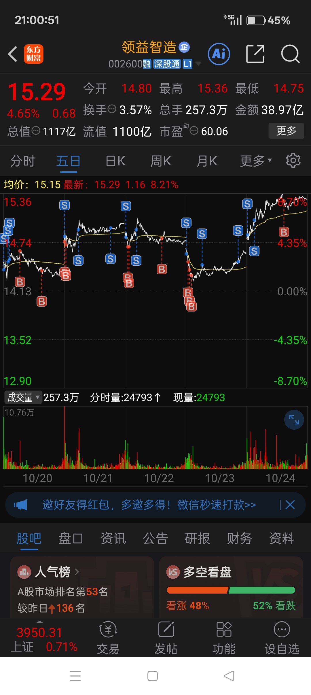 $领益智造(SZ002600)$ 上涨拿不住,下跌加仓又加仓