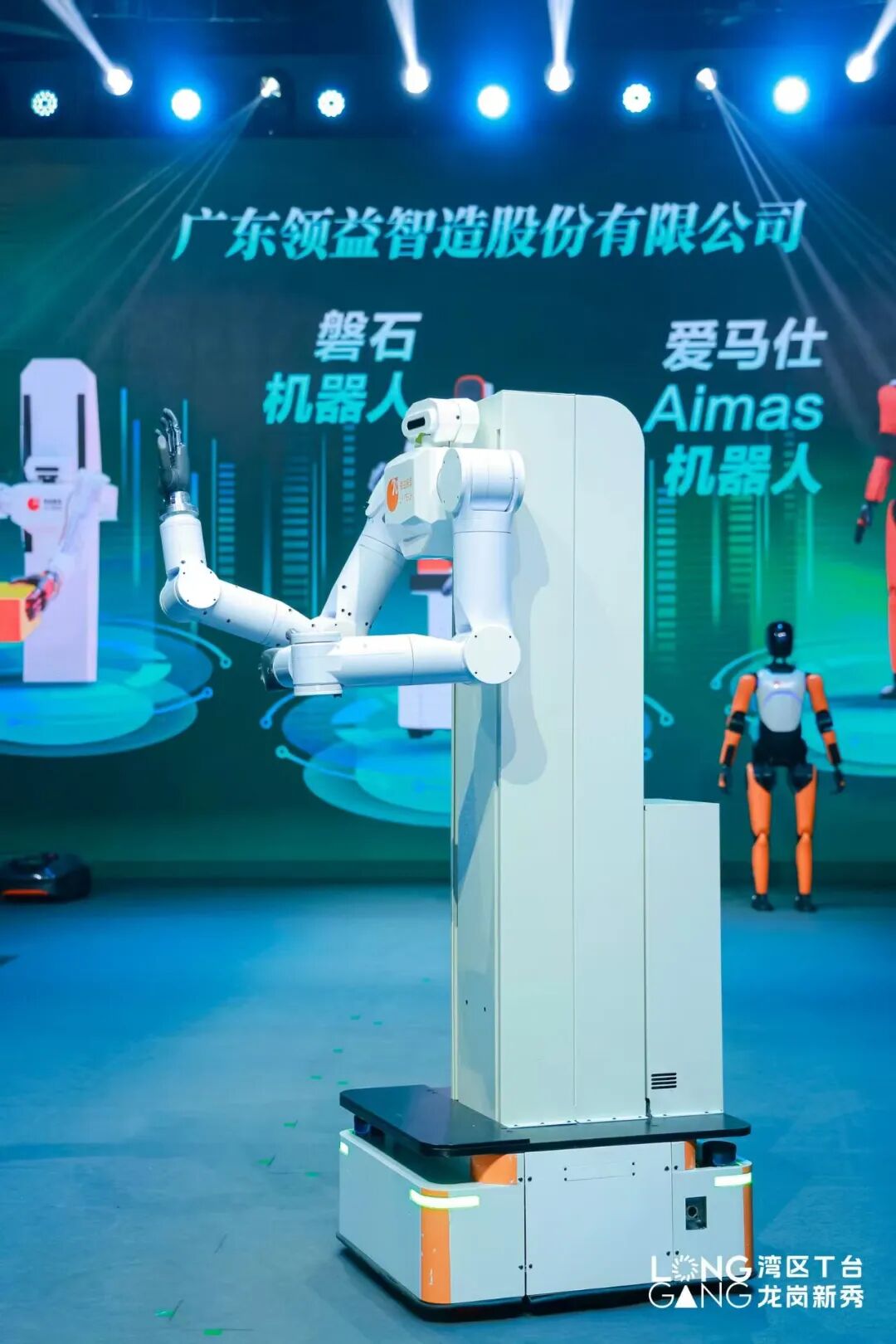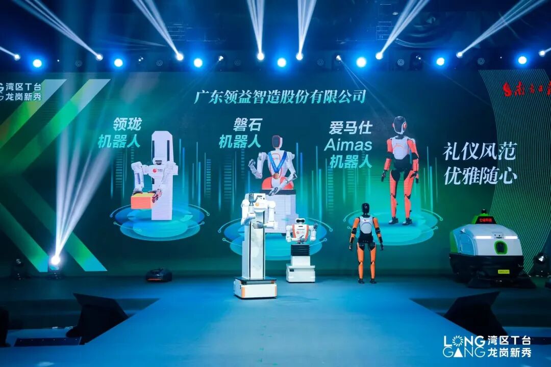 在湾区T台秀环节,人形机器人Aimas、工业机器人领珑、磐石轮番亮相,各显才艺,将整场发布会推向高潮。