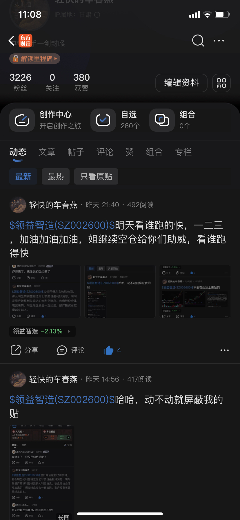 温馨提示: 1.根据《证券法》规定,禁止编造、传播虚假信息或者误导性信息,扰乱证券市场;2.用户在本社区发表的所有资料、言论等仅代表个人观点,与本网站立场无关,不对您构成任何投资建议。用户应基于自己的独立判断,自行决定证券投资并承担相应风险。《东方财富社区管理规定》