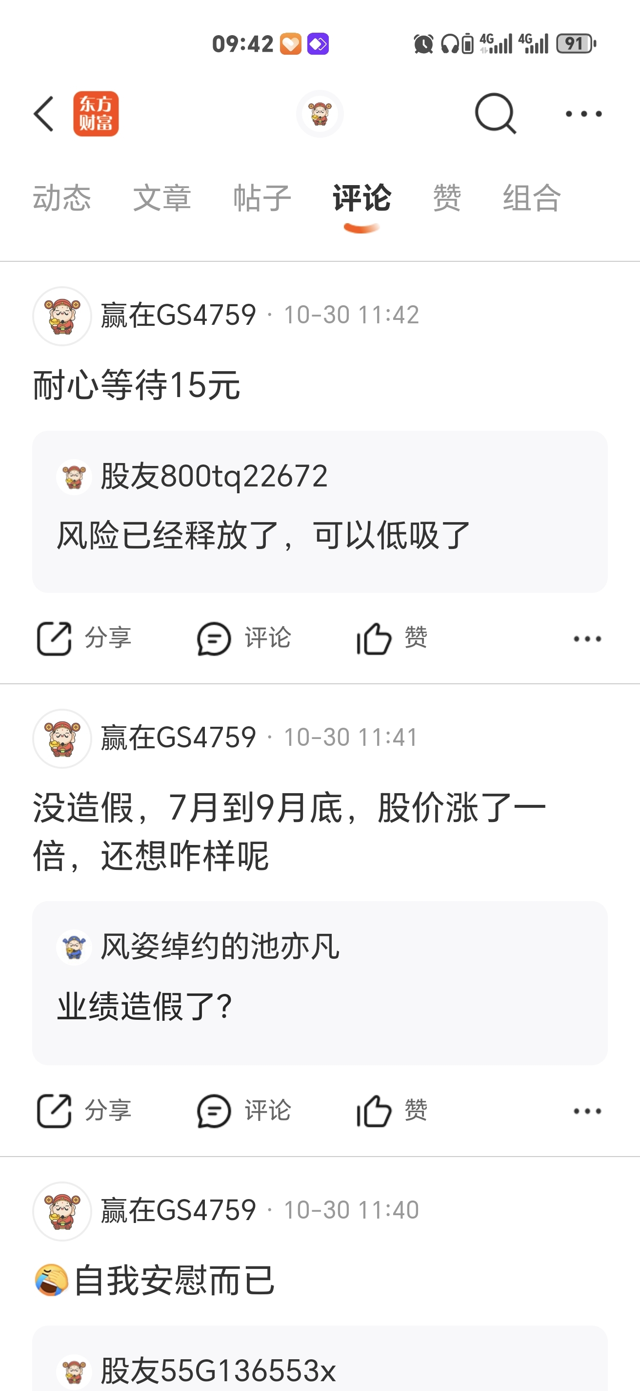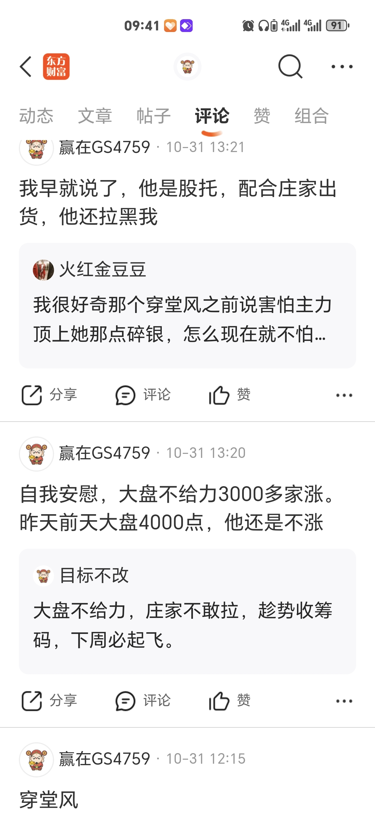 被穿堂风忽悠过的散户来看看,我早就说了他是配合主力出货,靠出卖信息赚钱。1.7万粉,总有脑子不行的。他自己说几百万全仓买一个,从9月初就买,到现在,三季度利好完了就这样了