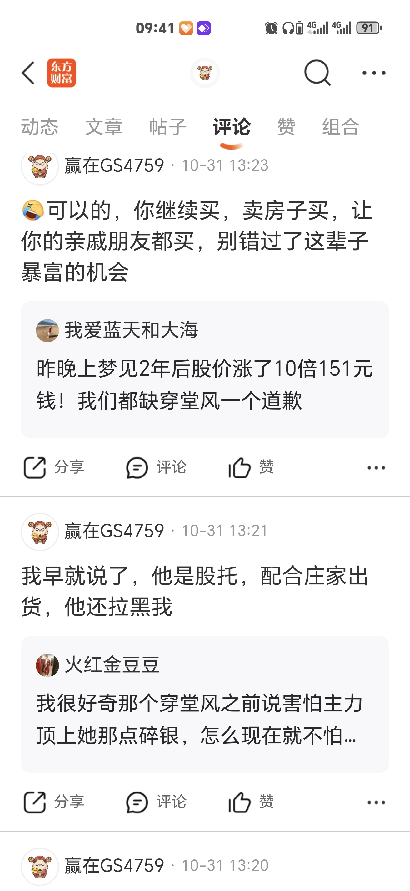 被穿堂风忽悠过的散户来看看,我早就说了他是配合主力出货,靠出卖信息赚钱。1.7万