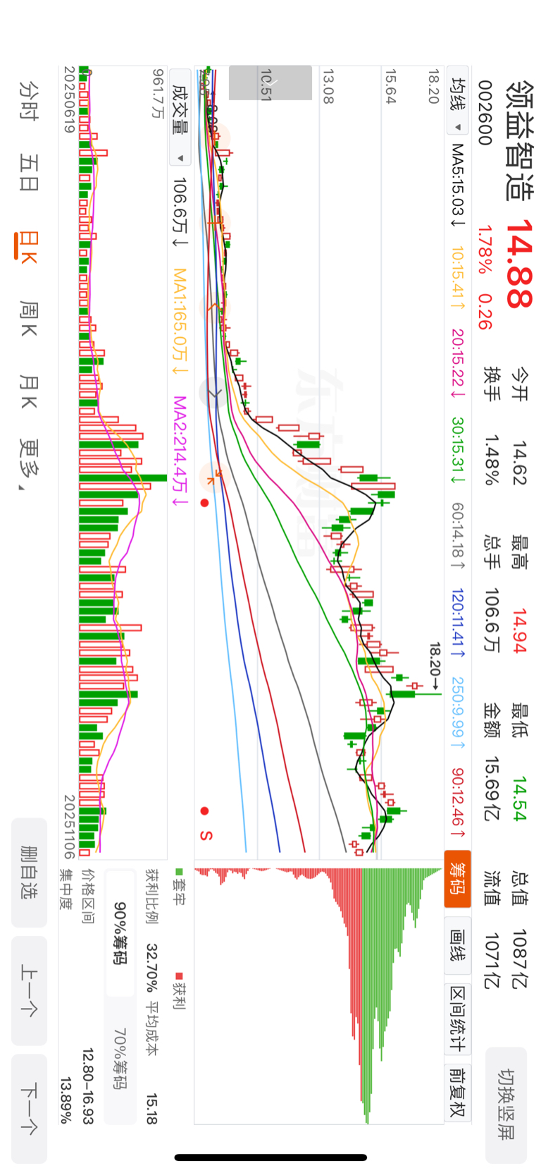 $领益智造(SZ002600)$ 这一波结束了 ,剩下的回调,破位,等明年再来玩, 底部筹码变少,越来越少,变没有了都