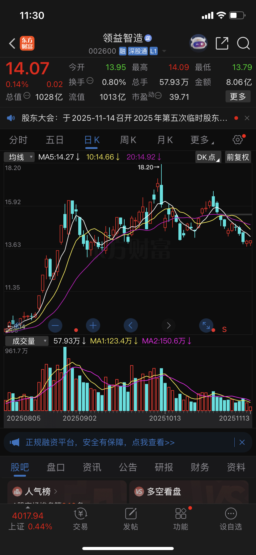 下午收盘依然绿盘,关键是如果明天大盘跌一个点领益会跌多少?不要和趋势过不去