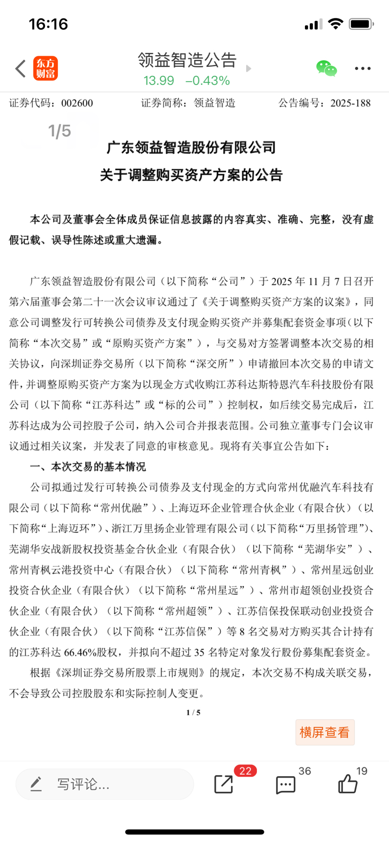 $领益智造(SZ002600)$ 看清楚了,公司撤回原方案,换成现金收购,说明现金多的是。