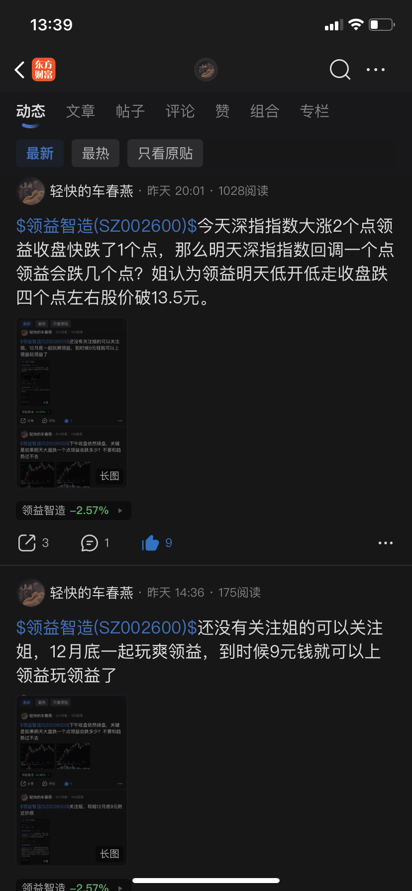 $领益智造(SZ002600)$ 姐和领益固定玩了12年了,13年开始和领益(江粉磁材)玩,12年时间断断续续地上上下下和领益玩了至少100次了吧。领益适合断断续续地玩,谁想长久玩就会被领益渣死的。领益最渣的一次是22年到23年,破纪录的连续阴跌了67个交易日。从14元跌到4元的。这次从18元会跌到年底9元左右的。没有关注姐的朋友关注姐,年底一起9元左右上了领益。玩死它