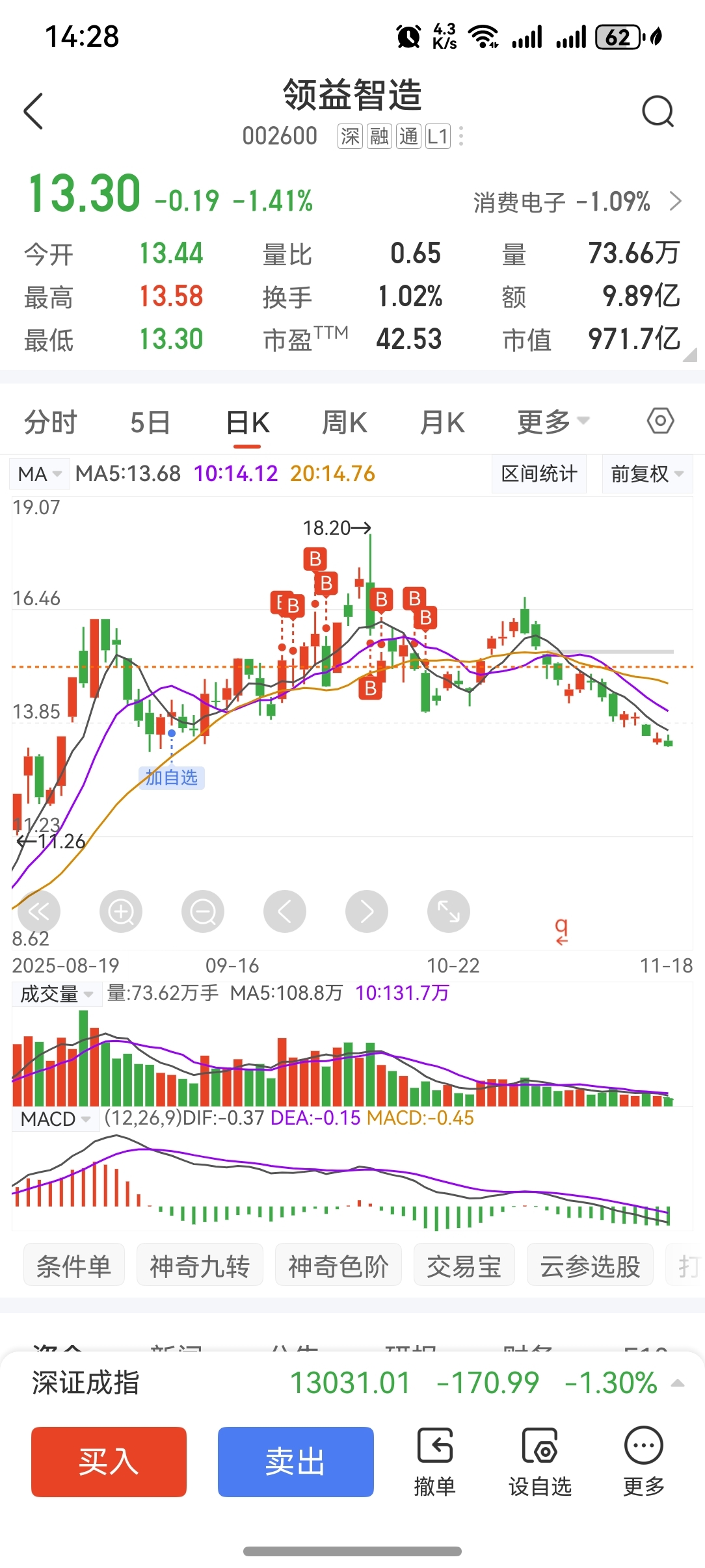 $领益智造(SZ002600)$ 这算 连续 14 跌吗