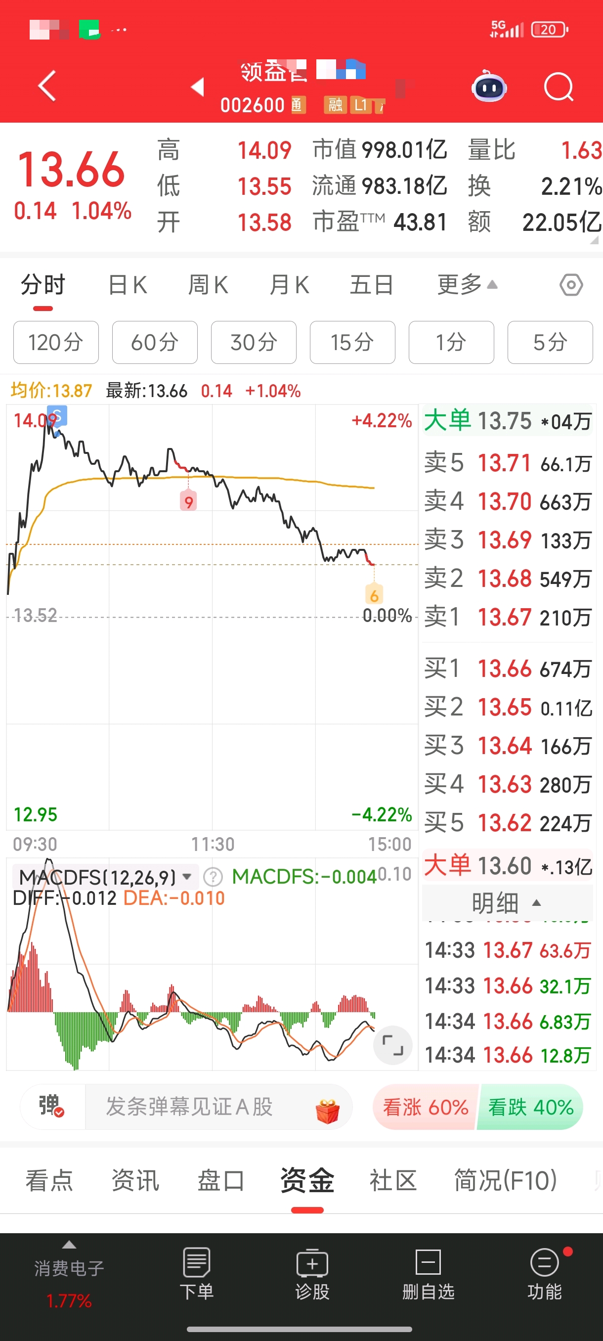 $领益智造(SZ002600)$ 我太了解你了,所以我知道你开盘不冲5%是不会涨停的,所以我卖了后天我在接回来,你明天还得跌