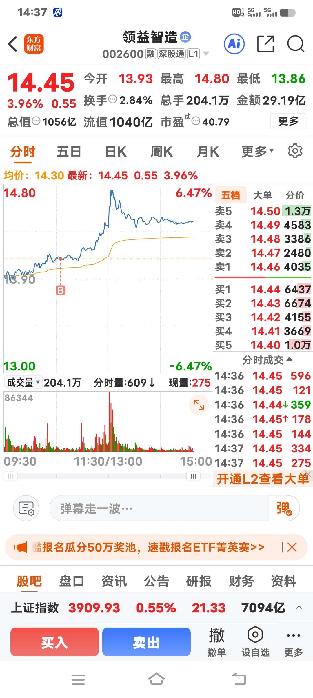 $领益智造(SZ002600)$ 14.50大单压着这是想造反啊,哥最看不起的就是这种人。那么大的单子一直压着,真不是个东西,