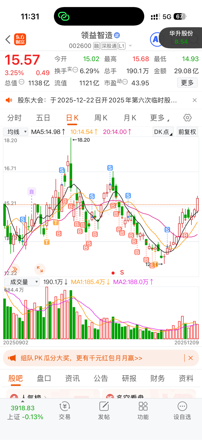 $领益智造(SZ002600)$ 新手上路被你套的这两个月终于熬出头了