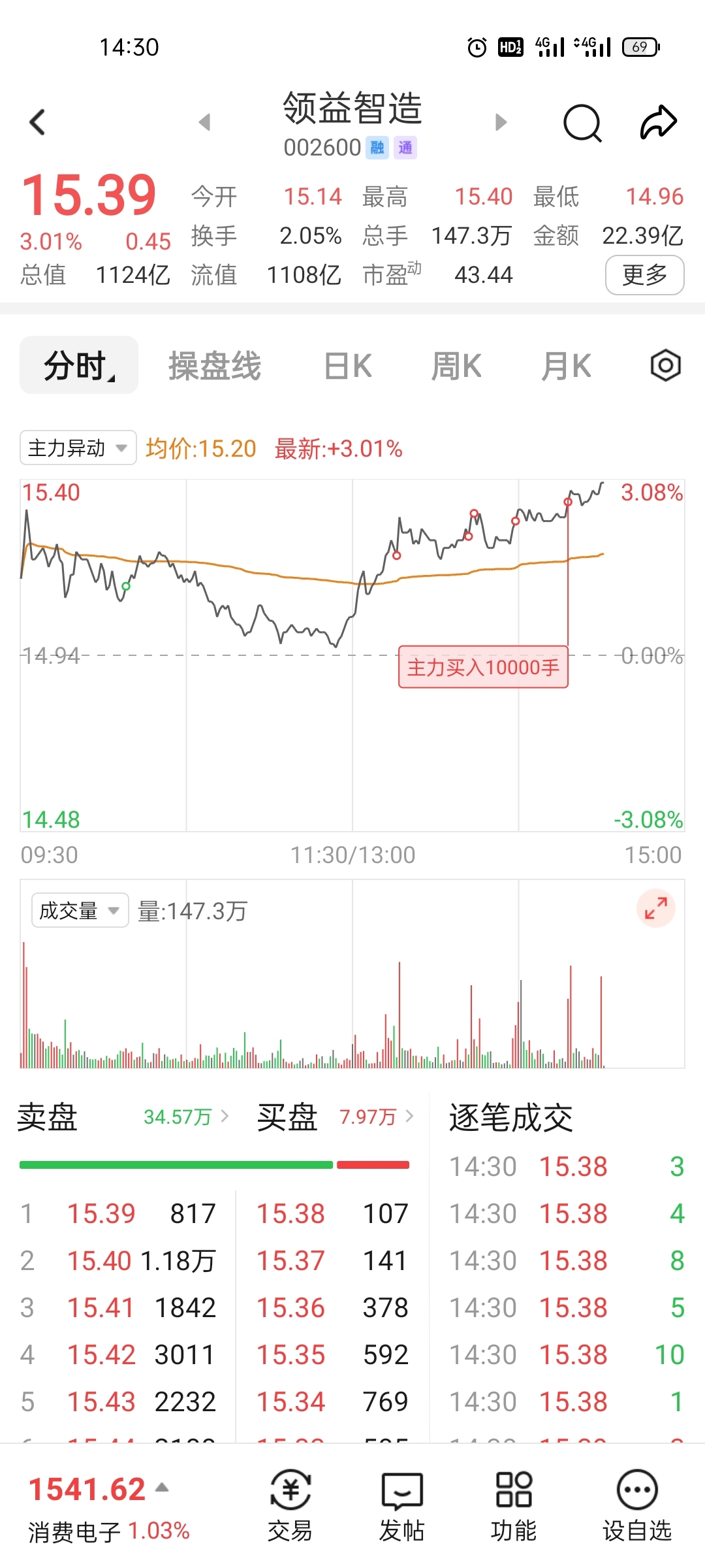 $领益智造(SZ002600)$ 不断试盘看抛压,主力入了非常多