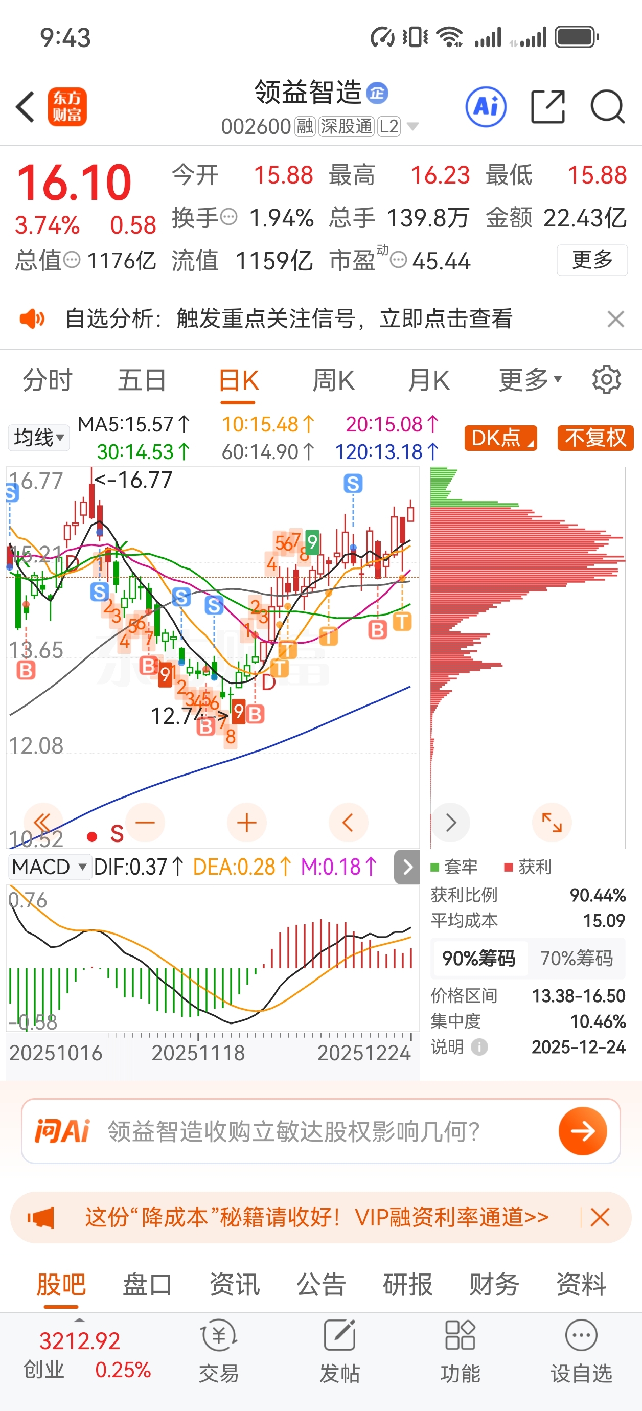 $领益智造(SZ002600)$ 这是个趋势票,绿了就做做t,不涨停加速不用动,我看好他至少破前高