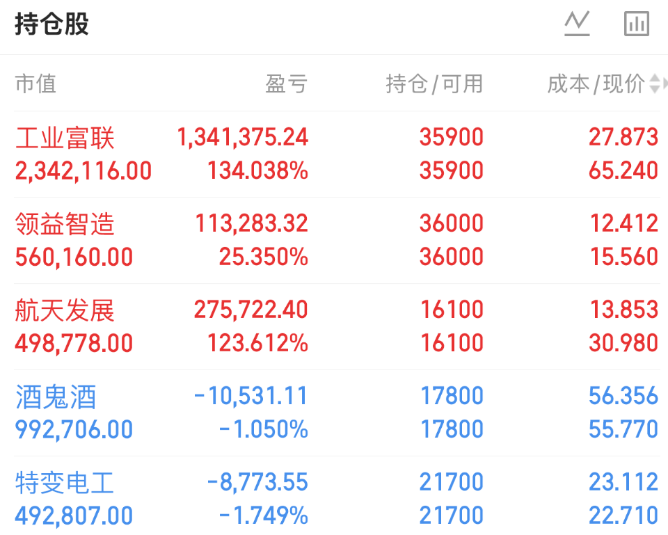 工业富联601138:它近期是小波段反弹行情,状态走的还是不错的,基本符合预期。它和指数的关联度是比较高的,本轮指数反弹行情没走完,那么它就还有反复走强的预期啊,继续耐心跟踪下了。而且它在科技方向内的辨识度是非常高的,科技方向表现是绕不开它的啊。工业富联,坤哥已经陪着好几个月了,前面纯低位参宇的,总的结果相当不错了。