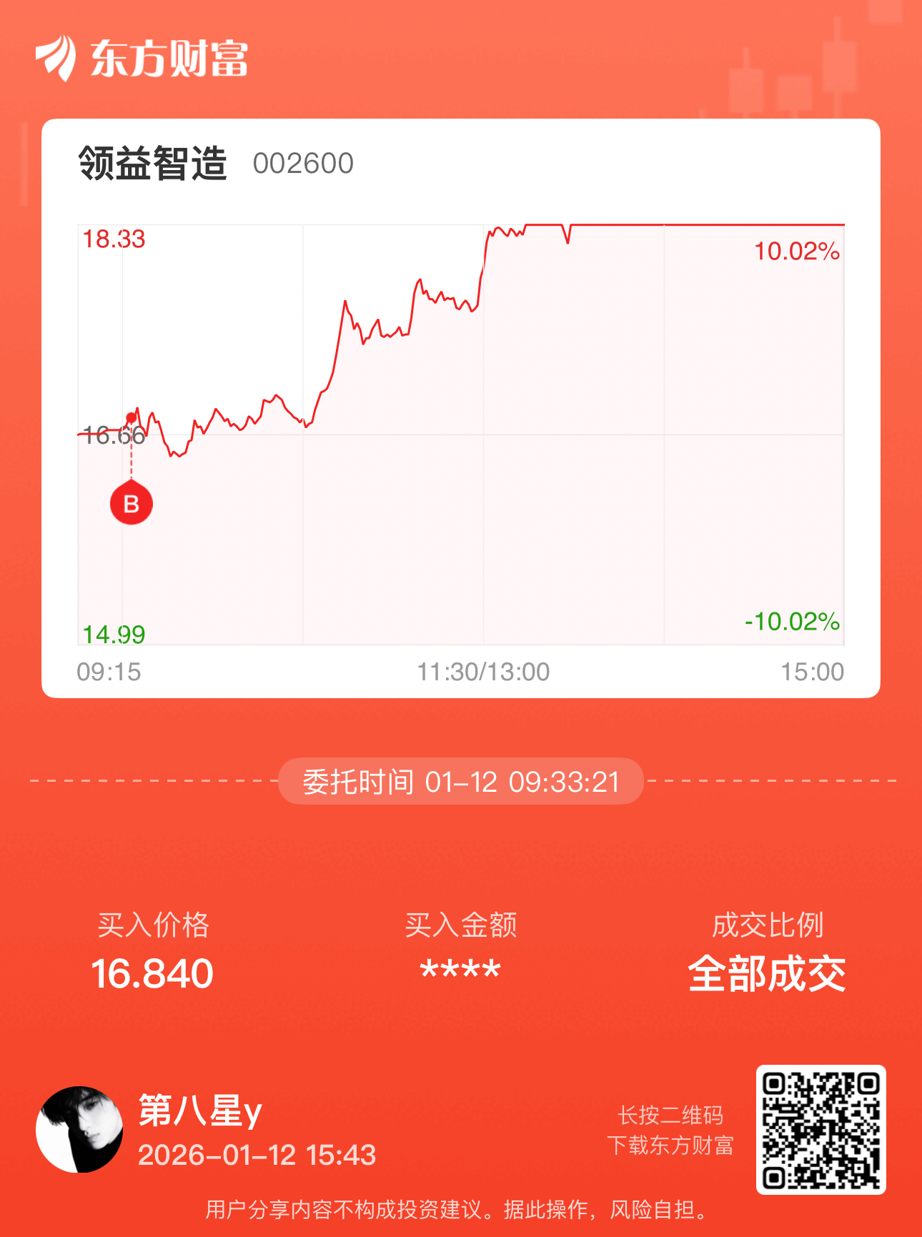 温馨提示: 1.根据《证券法》规定,禁止编造、传播虚假信息或者误导性信息,扰乱证券市场;2.用户在本社区发表的所有资料、言论等仅代表个人观点,与本网站立场无关,不对您构成任何投资建议。用户应基于自己的独立判断,自行决定证券投资并承担相应风险。《东方财富社区管理规定》
