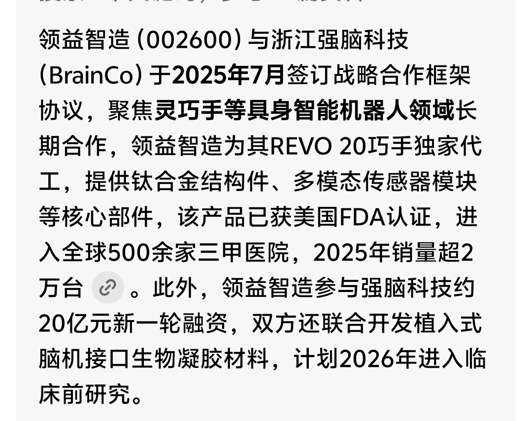$领益智造(SZ002600)$ 领益智造为准备在香港上市的强脑科技提供配件及合作开发的有力支持