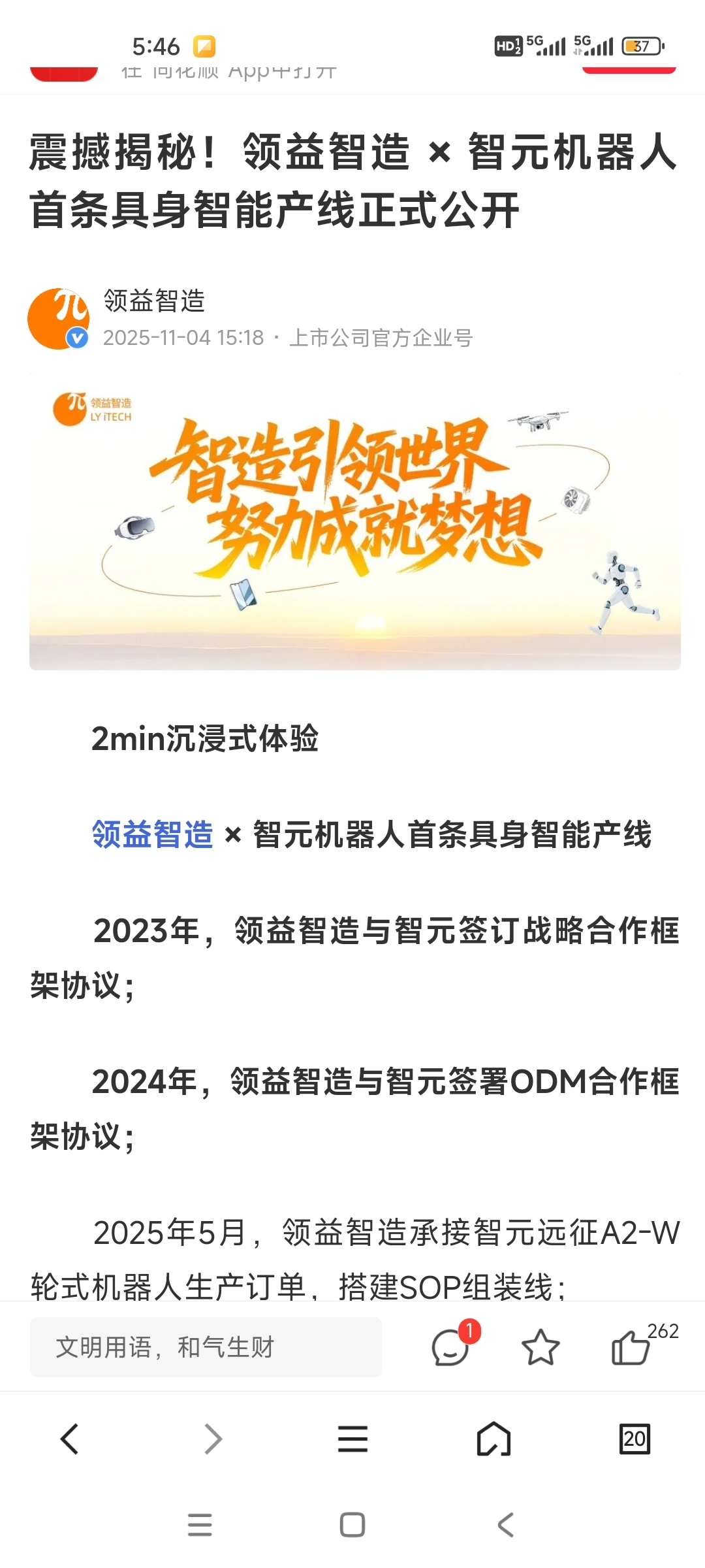 $领益智造(SZ002600)$ 领益智造最大优势是机器人领域,立讯和蓝思没有的,还有英伟达的散热,通过收购进入英伟达散热认证,机器人智元排名第一,第二宇树,推断就是未来最大机器人制造是领益不是三花,三花主要是做散热,领益电机,模块,伺服,减速都做,电池,电源