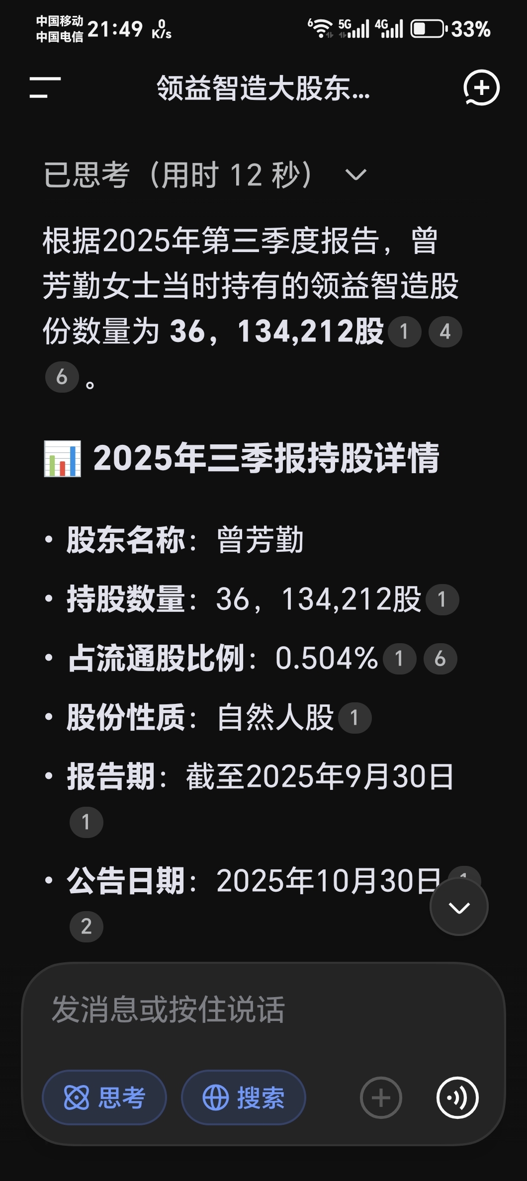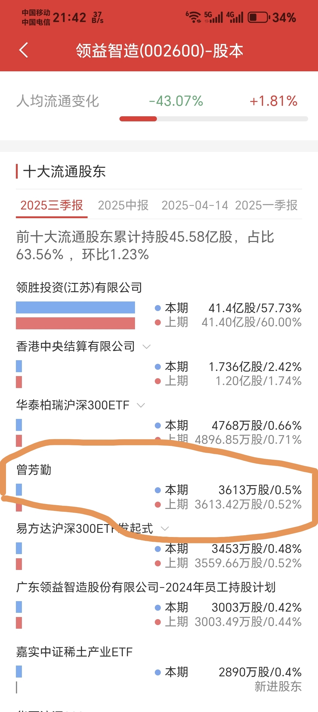 本次减持预告,曾芳勤持股1.4亿股,此次减持不超过3600万股。查询公司2025