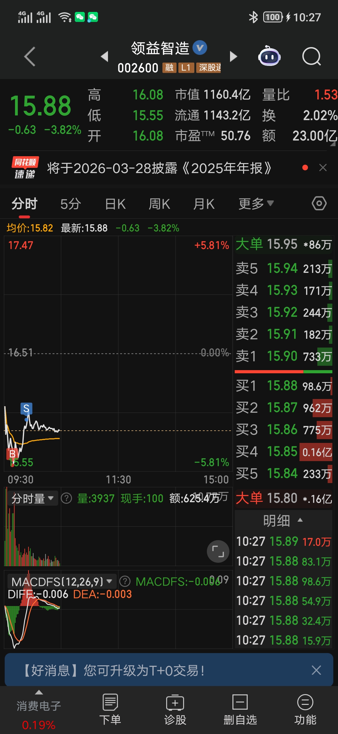 $领益智造(SZ002600)$ 没有办法,还没有到确定性底部,只能找合适的位置进去做T,摊低成本,等确定性底部出现,那就是大举加仓!