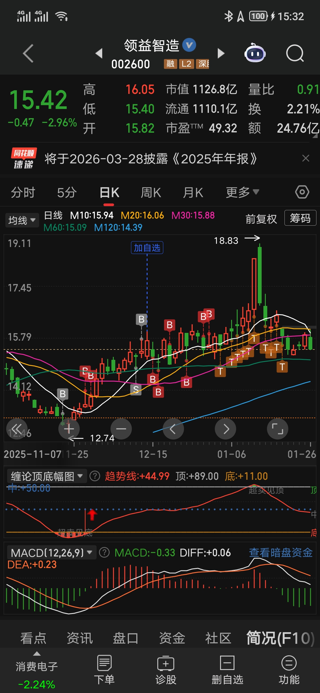 $领益智造(SZ002600)$ 快了,快到加仓区了,再等等,好在涨停板砍了半仓。保住了大半利润