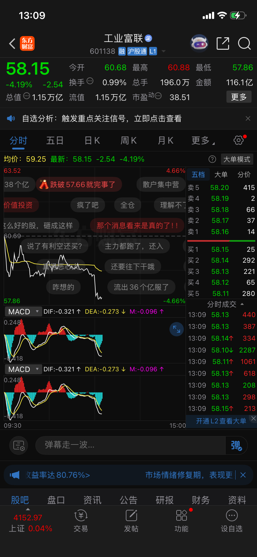 温馨提示: 1.根据《证券法》规定,禁止编造、传播虚假信息或者误导性信息,扰乱证券市场;2.用户在本社区发表的所有资料、言论等仅代表个人观点,与本网站立场无关,不对您构成任何投资建议。用户应基于自己的独立判断,自行决定证券投资并承担相应风险。《东方财富社区管理规定》