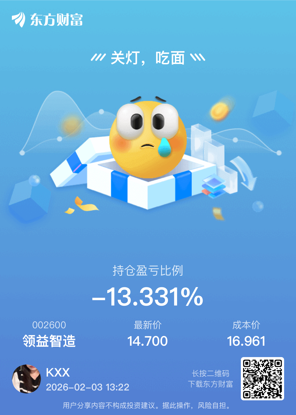 温馨提示: 1.根据《证券法》规定,禁止编造、传播虚假信息或者误导性信息,扰乱证券市场;2.用户在本社区发表的所有资料、言论等仅代表个人观点,与本网站立场无关,不对您构成任何投资建议。用户应基于自己的独立判断,自行决定证券投资并承担相应风险。《东方财富社区管理规定》