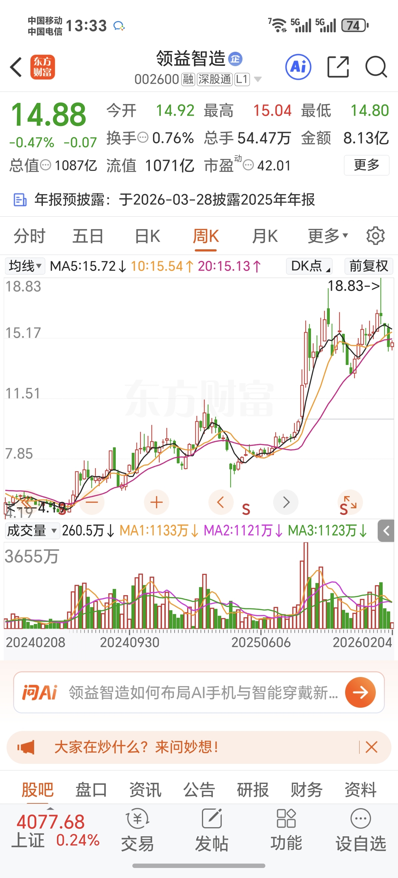 $领益智造(SZ002600)$ 周线大双头,好吓人!!!