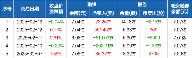 龙佰集团:融资净买入23.26万元,融资余额7.04亿元(02-13)
