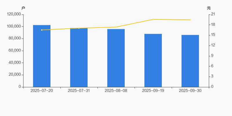 自2025年7月20日以来,公司股东户数连续4期下降,截至目前减幅为15.93%。2025年7月20日至2025年9月30日区间股价上涨17.80%。