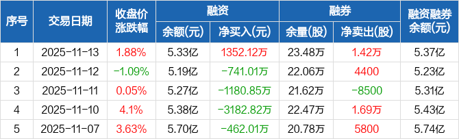 龙佰集团:融资净买入1352.12万元,融资余额5.33亿元(11-13)