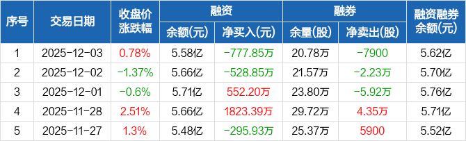 龙佰集团:融资净偿还777.85万元,融资余额5.58亿元(12-03)