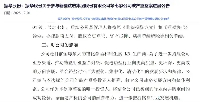 振华走的则是另一条路。自2016年上市以来,始终坚持纵向一体化+绿色制造,上游布局18万吨铬矿分选能力,中游不断优化工艺,下游拓展维生素K3、金属铬、超细氢氧化铝等高附加值产品,形成闭环生态。