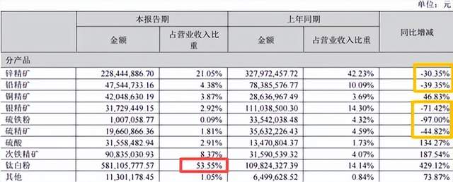更要命的是,国城的产品主打通用市场,比如建筑涂料、塑料制品等,高度同质化,价格一降就血流成河。一旦地产不景气或产能过剩,立马陷入价格战泥潭。到2025年上半年,钛白粉营收占比飙升至53.55%,首次超过锌精矿,成为第一大收入来源。这恰恰说明,它的老本行已经撑不住了。