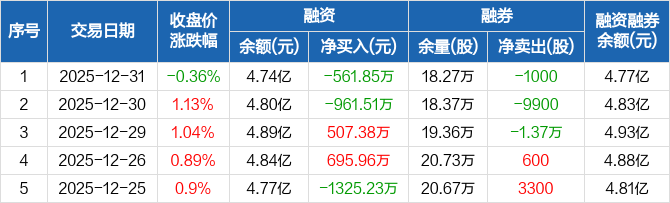 龙佰集团:融资余额4.74亿元,创近一年新低(12-31)