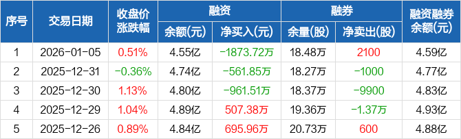 龙佰集团:融资余额4.55亿元,创近一年新低(01-05)