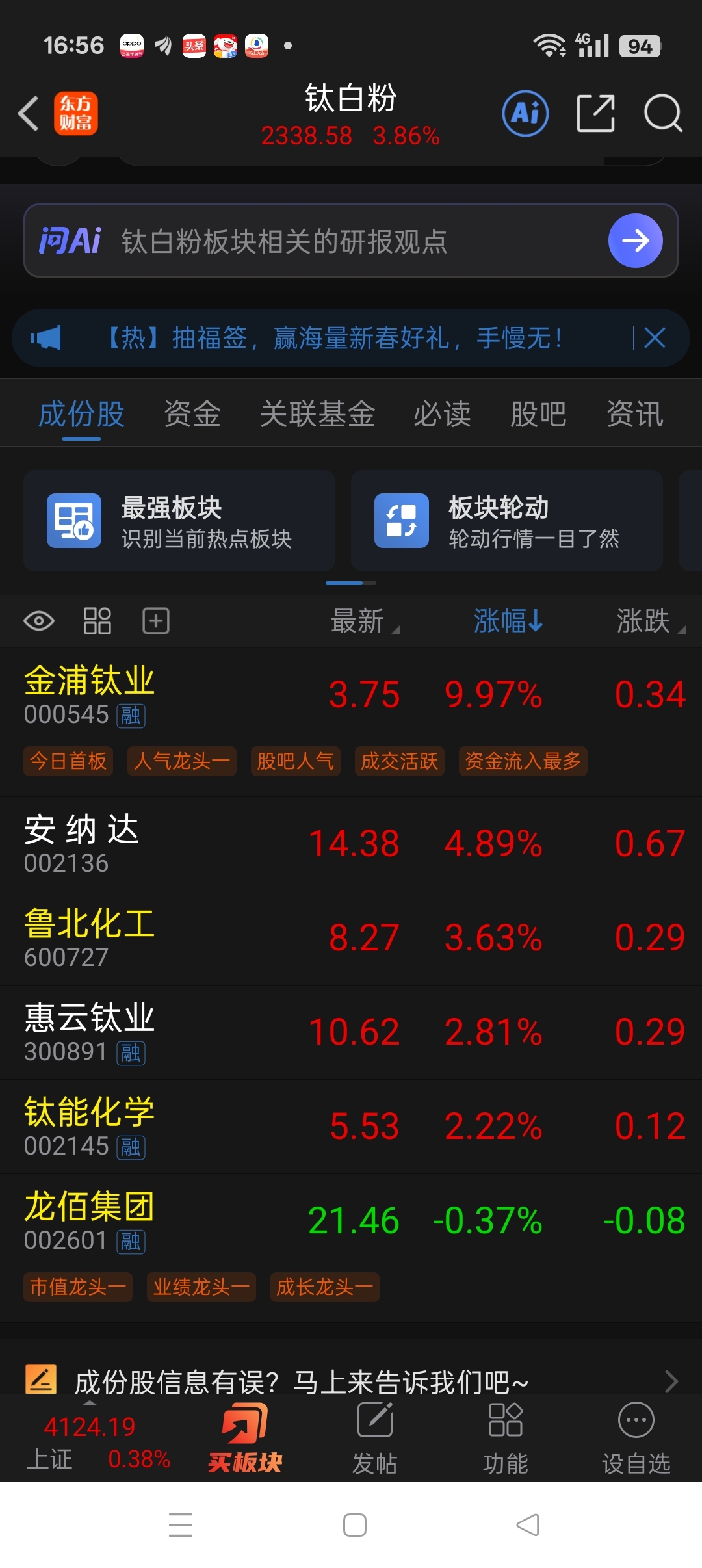 $龙佰集团(SZ002601)$ 板块独你跌。万红丛中一点绿!