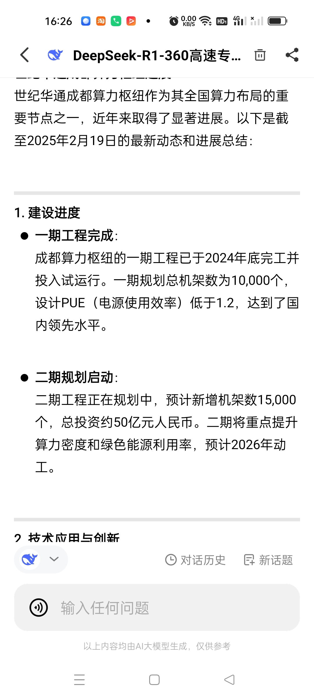 成都算力枢纽一期仅投资30亿,二期在建设中,原预期一年算力收入为10亿