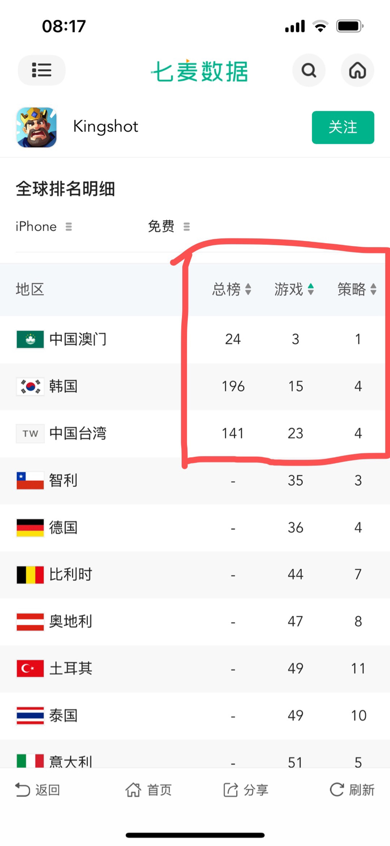$ST华通(SZ002602)$ Kingshot极有可能成为点点新的爆款,现在投放素材的几个地区排行节节攀升,特别是韩国是除中美日第4大游戏市场