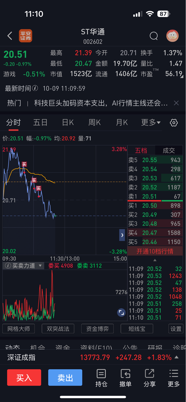 $ST华通(SZ002602)$ 对不起!被我买崩了,15我没进,18没进,今天追着进,被套了。