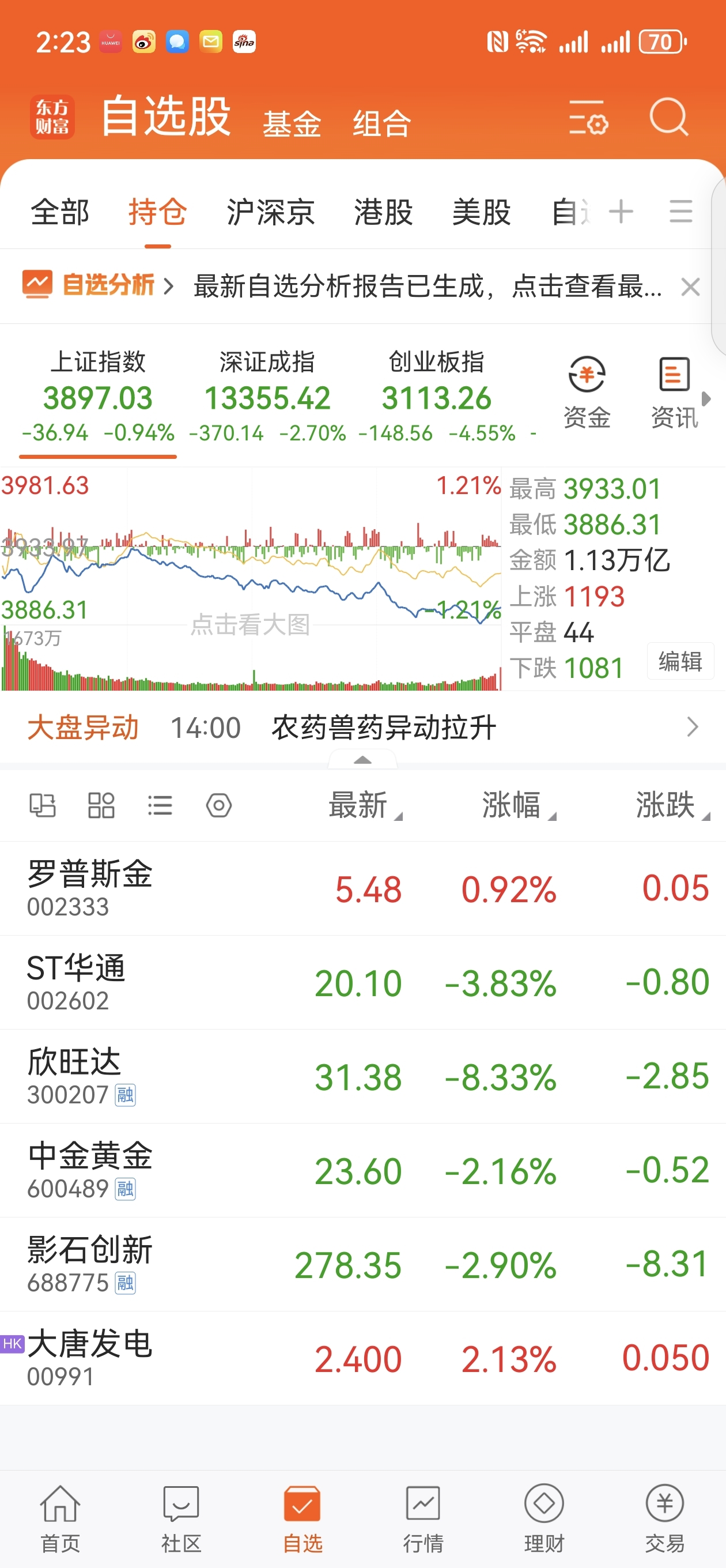 从华通开始单持到分仓到多只股票,为了是分散风险,目前总仓位不到10%,九月份到年底,股市已经进入震荡整理阶段,高位震荡是常态,后续需要经历的是三季报和年报的业绩证伪,静待重仓的机会,黑天鹅的事件无法预测,但是可以回避,上涨只会带来风险,下跌才会有机会。