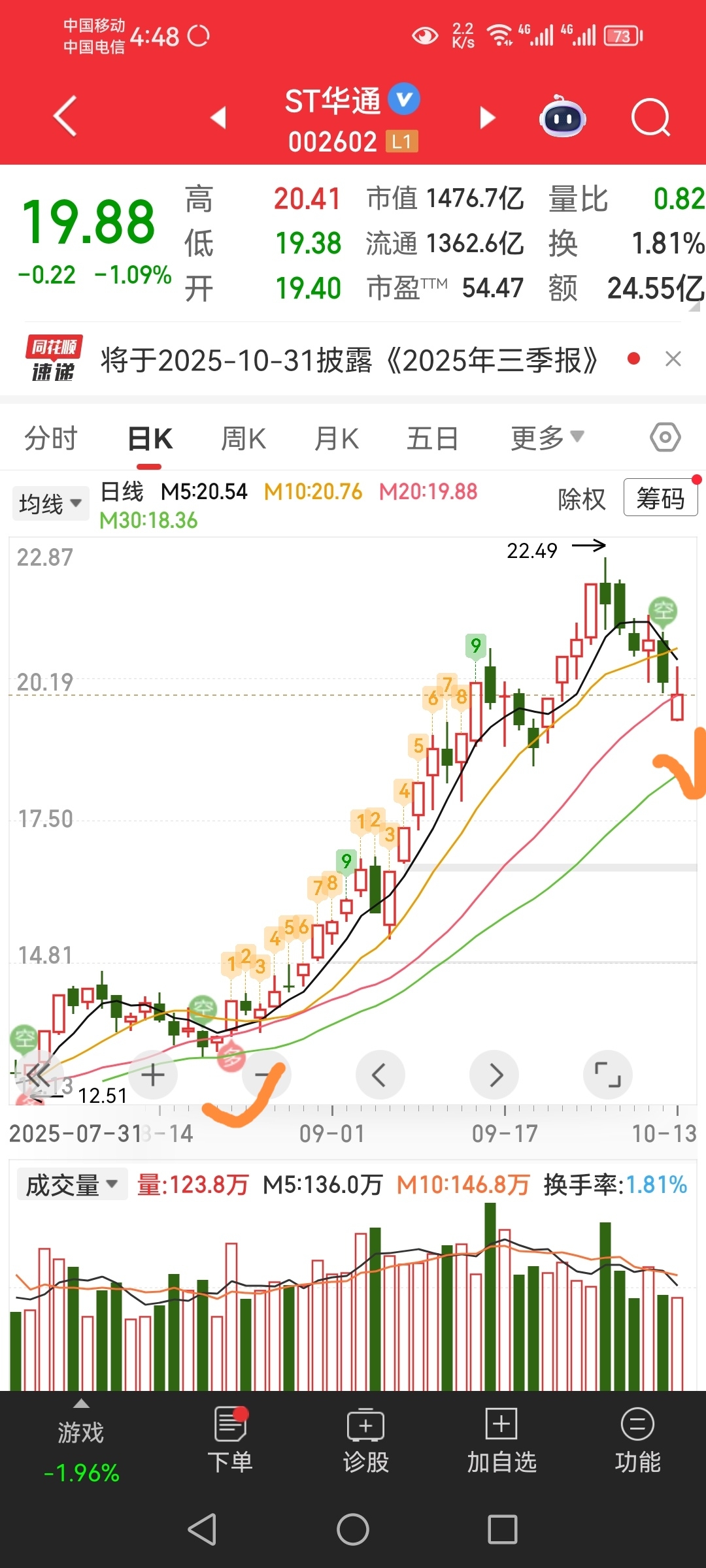 $ST华通(SZ002602)$ 明天必出“买多”红信号,返身上行