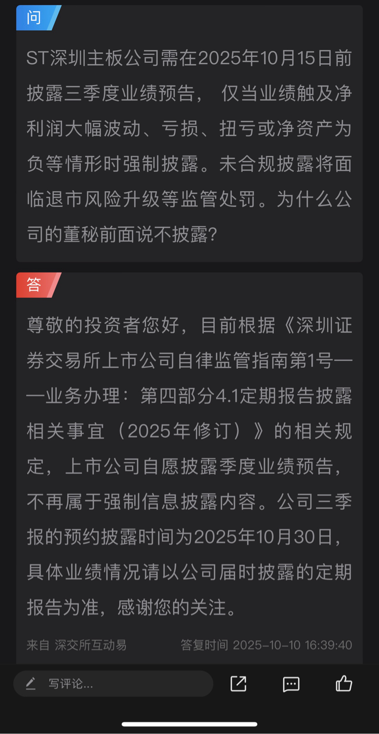 $ST华通(SZ002602)$ 别吹三季度预报了,非强制的