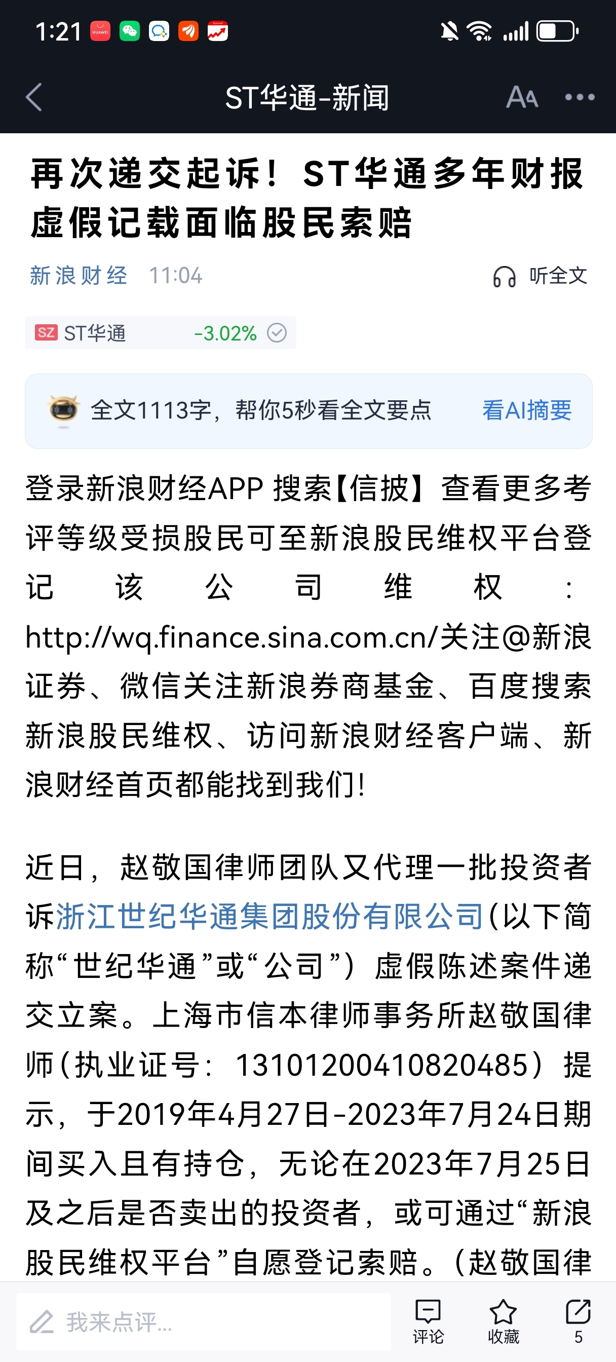 $ST华通(SZ002602)$ 原因找到了!再次提交起诉?被起诉咯?